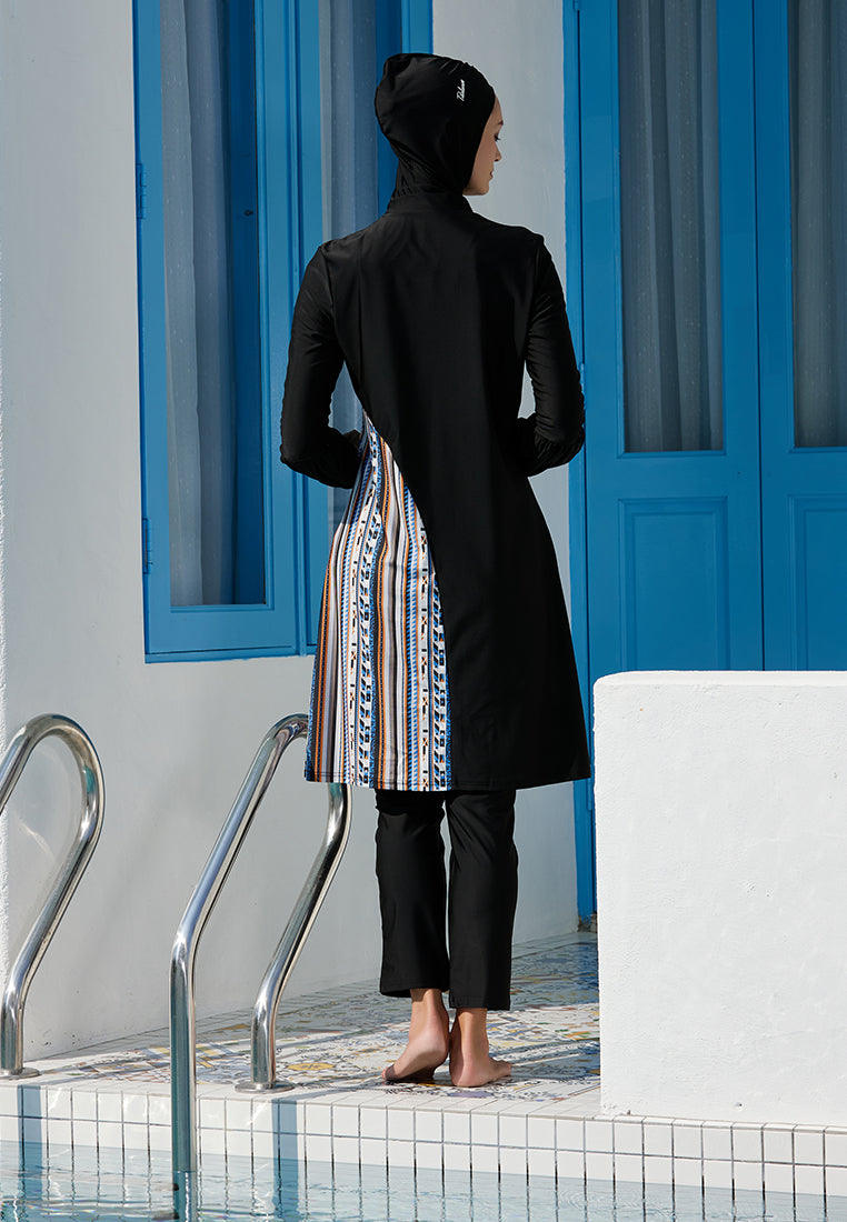 Our Tidalwave Kali Modest Beachwear set boasts understated elegance- with a vibrant pop of color at the side.
