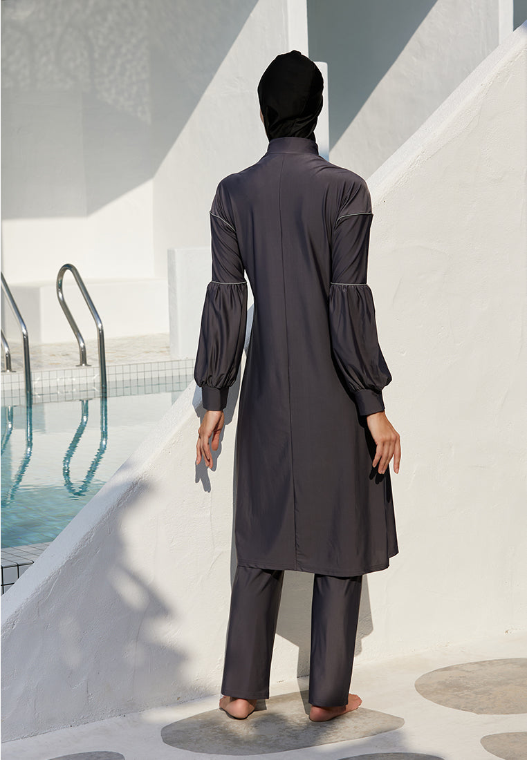 Dive into the epitome of elegant modesty with Tidalwave's newest collection, a captivating fusion for the contemporary Muslimah. Elevate your beach experience with our three-piece set. Unleashing a tidal wave of style, our designs transcend convention, offering a fusion of fashion and modesty that speaks to the bold and sophisticated tastes of women seeking a departure from mundane, generic options.